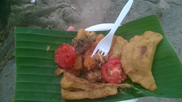 Este es el tugurio al que he accedido. He comido un par de tortas de maíz rellenas con una fanta para beber (no me fío del agua sin embotellar). El precio final 1$. Como suena. Sólo uno.