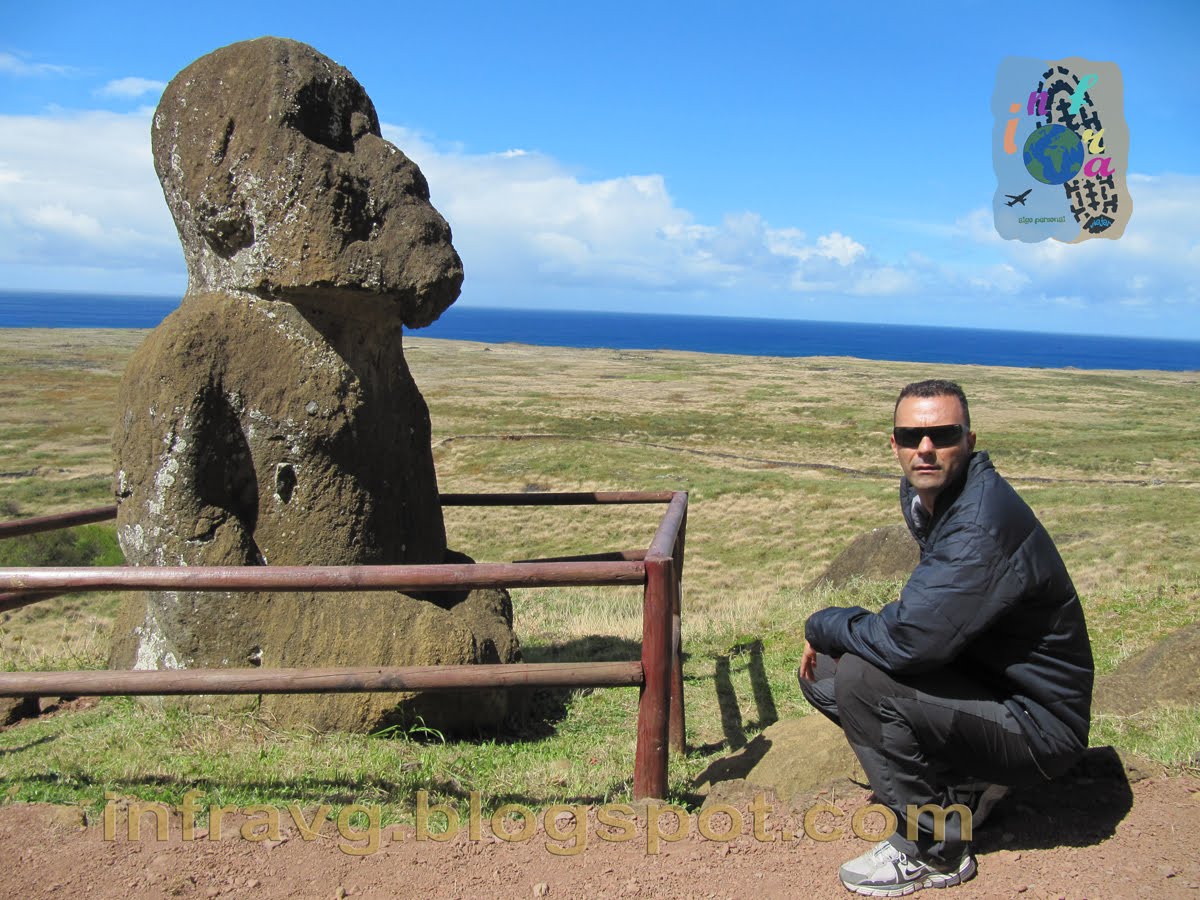 Nuestra cuarta parada es el Volcán Rano Raraku. Uno de los sitios más importantes de Rapa Nui, la cantera donde se realizaban estos maravillosos Moais, localizado sobre las cuestas del volcán homónimo, donde un total de aproximadamente 900 estatuas fueron talladas. Es alucinante ver tantos Moais juntos, la verdad que si parece una fábrica, pero al aire libre.
