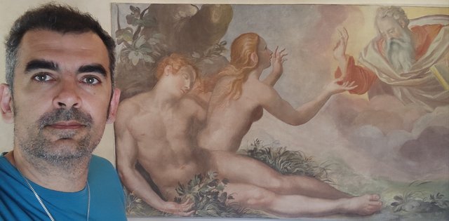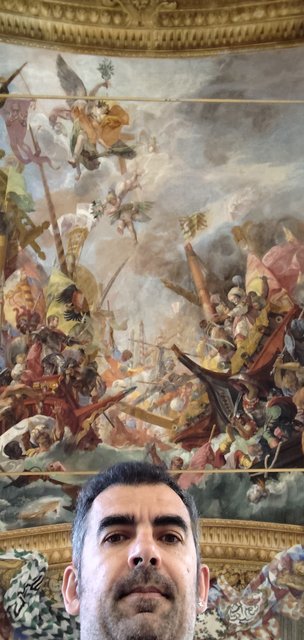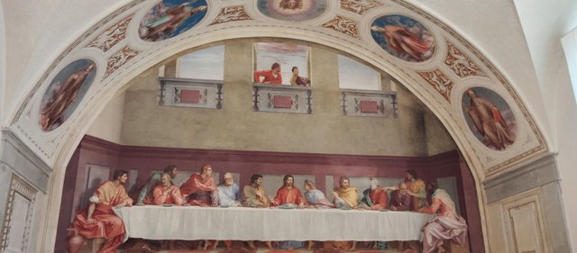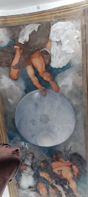 Salgo de la visita, con este inquietante fresco en el techo de la entrada: