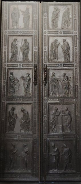 Después tendría que volver hacia el Baldaquino para meterme por la cola que va hacia la salida para entrar por la Puerta Santa, la que se abre cada 25 años sólo en año jubilar, como ponen las placas de encima, pero estoy un poco harto de sentirme como una oveja así que me cuelo justo en la salida y accedo por la famosa puerta: