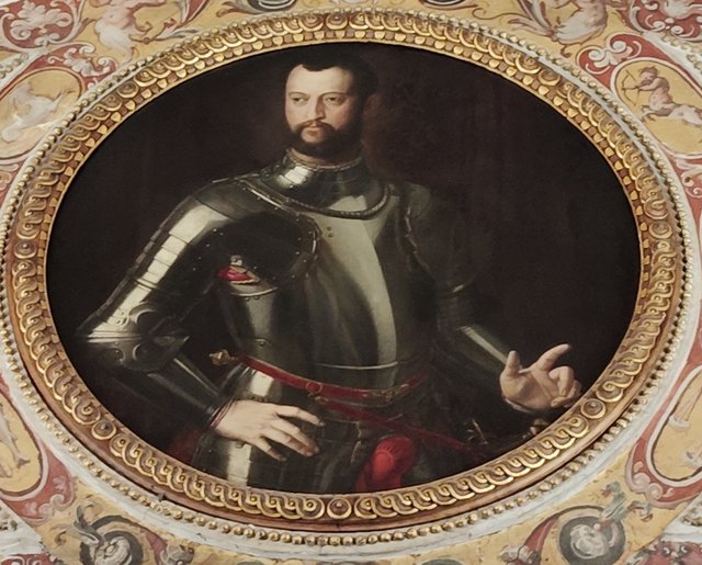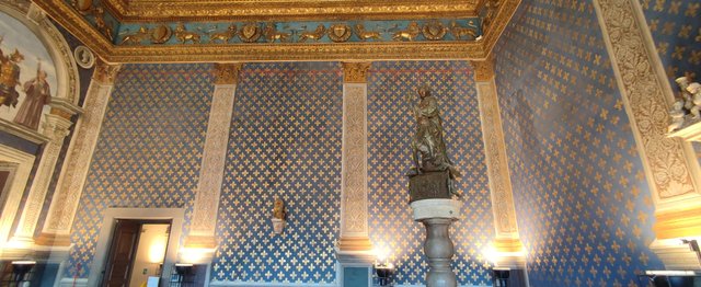 Sala de los 100 días, tiempo que tardó Vasari en pintar los frescos de la pared y del techo; el Palazzo es la sede del Museo de Leonardo da Vinci: