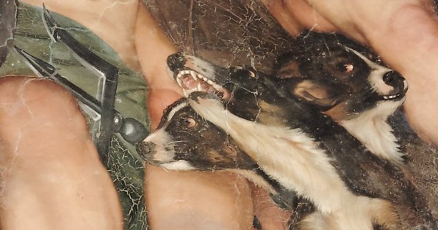 autorretratos del propio Caravaggio y Cerbero, el perro, sería el