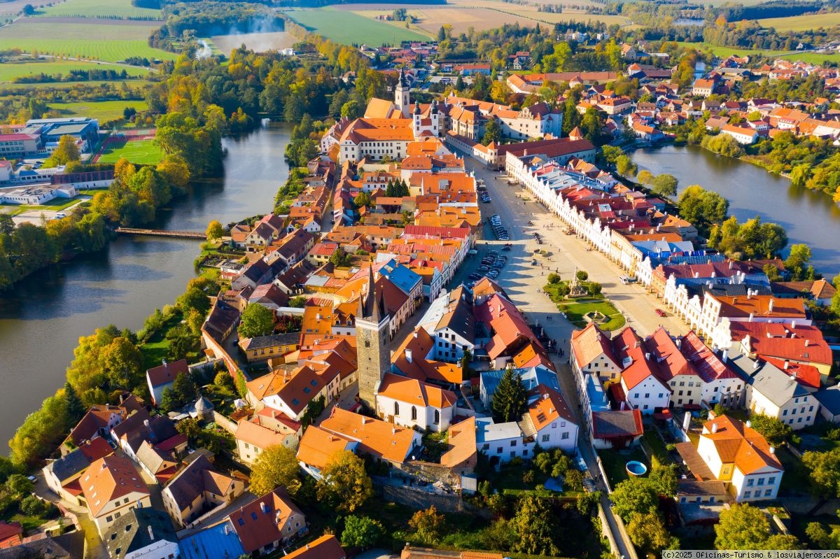 Telč, declarada Patrimonio Mundial por la Unesco, es una ciudad que conserva intacto su perfil renacentista. Su Plaza Mayor, rodeada de casas con fachadas de colores pastel y arcadas, constituye un conjunto urbano único en Europa Central. Credit CzechTourism.