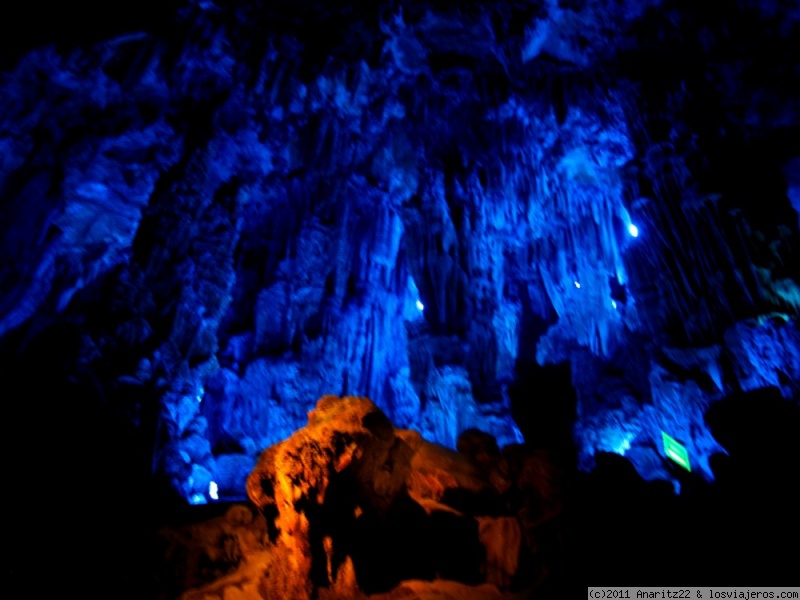 Cueva de la flauta de caña (Reed Flute Cave). Guilin. La cueva de la flauta de caña está situada al pie de la colina Guangming a las afueras de Guilin. Se trata de una magnífica cueva cárstica de piedra caliza con un recorrido de unos 500 metros.