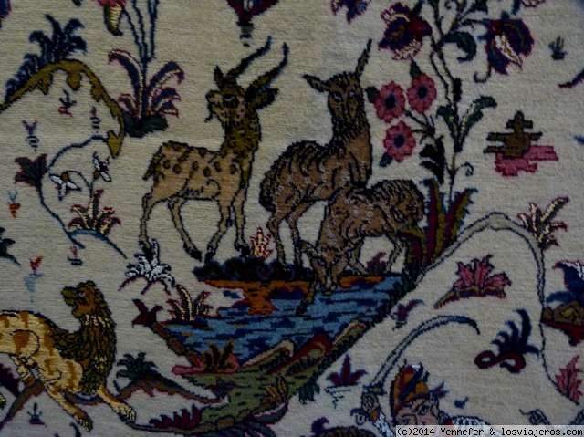 Detalle del dibujo de una de las alfombras del Museo de Alfombras de Teheran