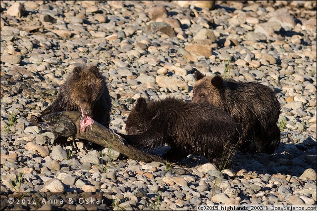 Crías de grizzly comiendo salmón en Bella Coola Valley - British Columbia (Canada)