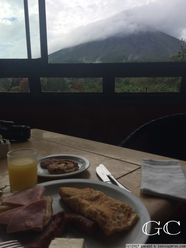 vistas de nuestro desayuno contemplando el Volcan Arenal