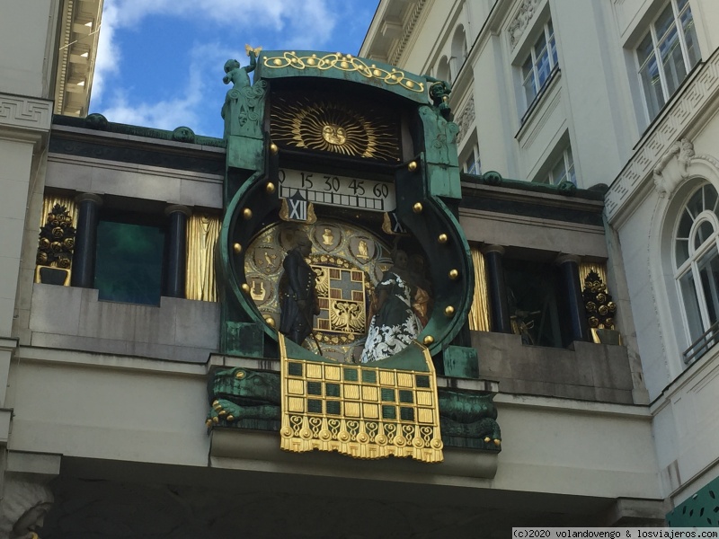 Este reloj, en realidad un puente para unir los 2 edificios Anker, es de principios del siglo XX. Cada hora lo recorre un personaje o pareja famosa en Austria. A las 12 del mediodía lo hacen las 12 figuras al son de una música.