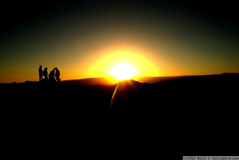 Después subir por la orilla de una gran duna, andar por un camino angosto, se culmina con una belleza sin igual, se observa como el sol se va apagando entre las montañas, los colores ocres se van oscureciendo y el cielo se tiñe de un amarillo a un rojo intenso pasando por todas sus tonalidades.