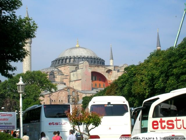 La plaza de Sultanahmet siempre está llena de autobuses llenos de turistas ávidos de hacerle una gran foto a Sta. Sofia! :)