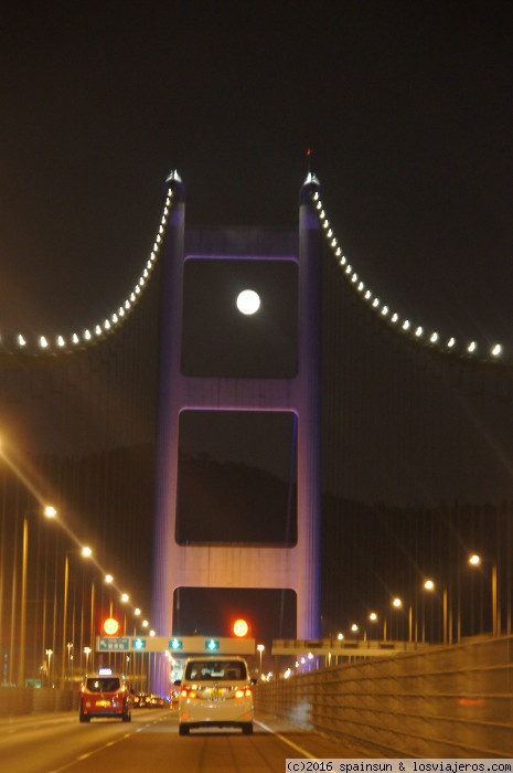 Espectacular esta luna llena que nos recibió en uno de los enormes puentes que une el aeropuerto de Hong Kong y las isla de Lantau, con el continente.