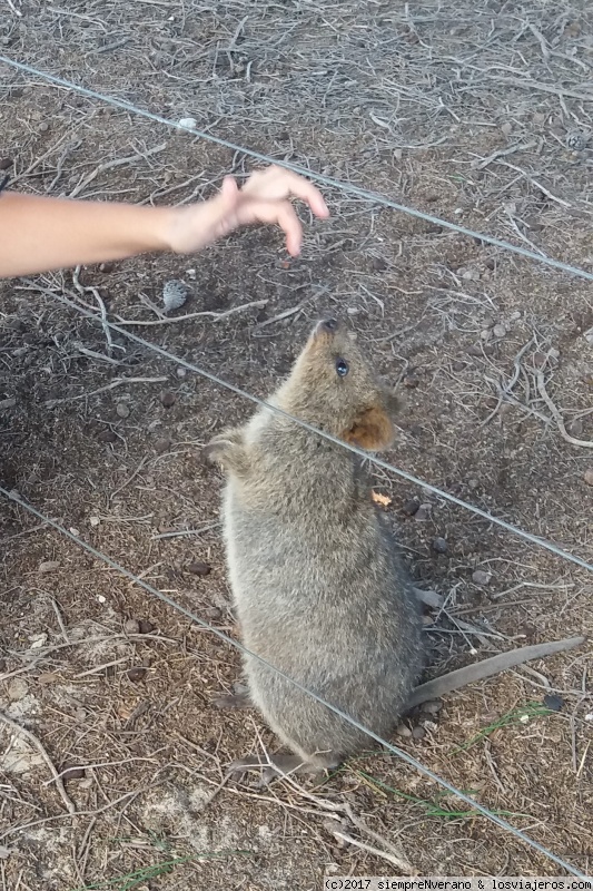 QUOKKA: marsupial oriundo de la Isla Rottnest, a 15 kms de Fremantle (Perth). Del tamaño de un gato casero se desplaza como un canguro, impulsándose con la cola y sus patas traseras. No escapa de los seres humanos sino le encanta nuestra nuestra compañía, son pacíficos, amistosos y tranquilos.