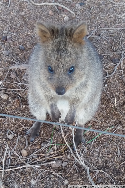 QUOKKA: marsupial oriundo de la Isla Rottnest, a 15 kms de Fremantle (Perth). Del tamaño de un gato casero se desplaza como un canguro, impulsándose con la cola y sus patas traseras. No escapa de los seres humanos sino le encanta nuestra nuestra compañía, son pacíficos, amistosos y tranquilos.