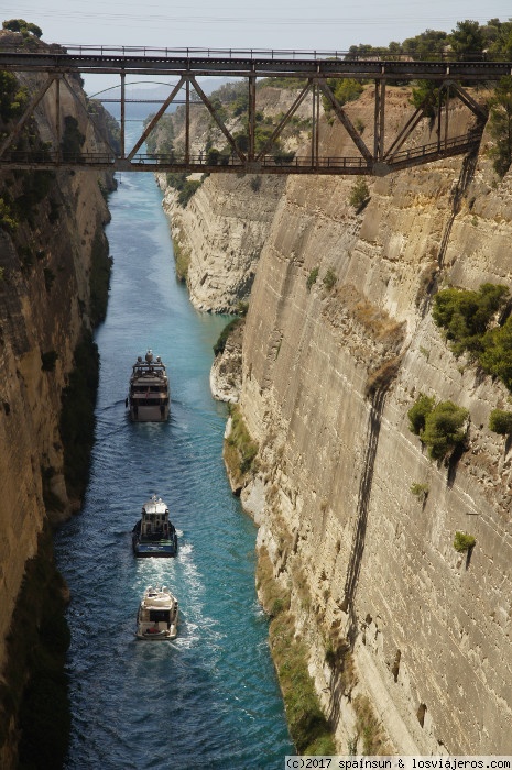 El famoso canal de Corinto que ahorra una vuelta de 400km alrededor de la península del Peloponeso, para llegar desde el Mar Jónico a Atenas.