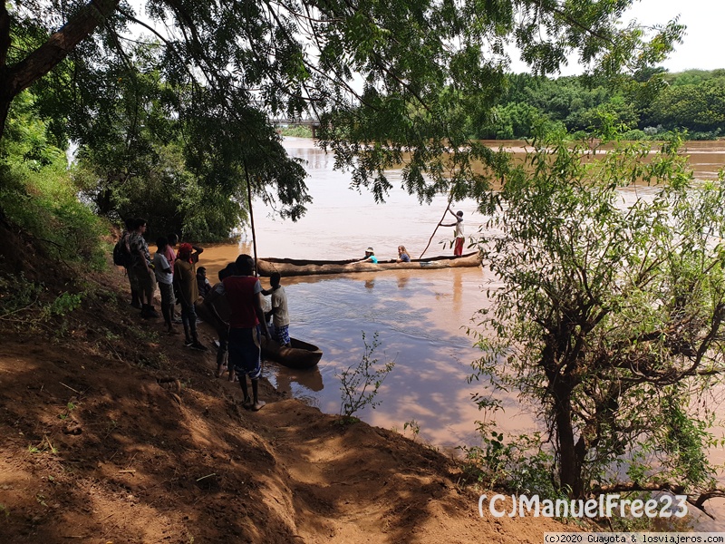 Embarcando en canoa en Omorate para visitar a la tribu Dassanech.