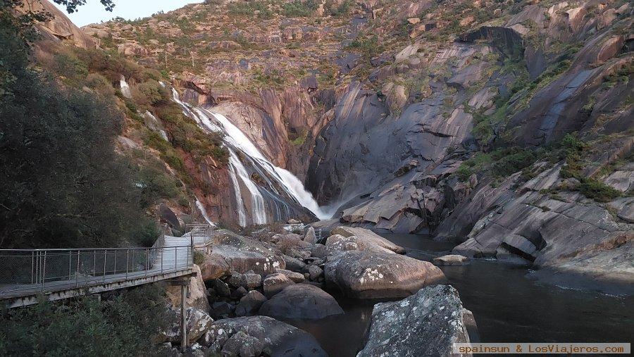La Cascada de Ézaro es un paraje natural situado en el municipio de Dumbría, en la provincia de A Coruña, Galicia. Es un lugar único porque es la única cascada en Europa cuyo río, el Xallas (Jallas en castellano), desemboca directamente en el mar. Su caída de aproximadamente 40 metros de altura forma un espectáculo impresionante, especialmente en épocas de lluvia, cuando el caudal es más abundante.