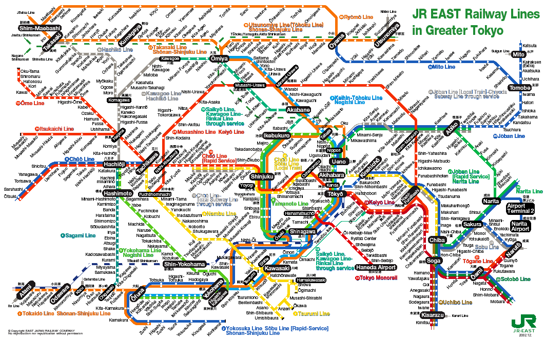 Como para todo usa japan guide, te salen los recorridos de las dos lineas jr que pasan por tokyo la yamanote y la chuo line