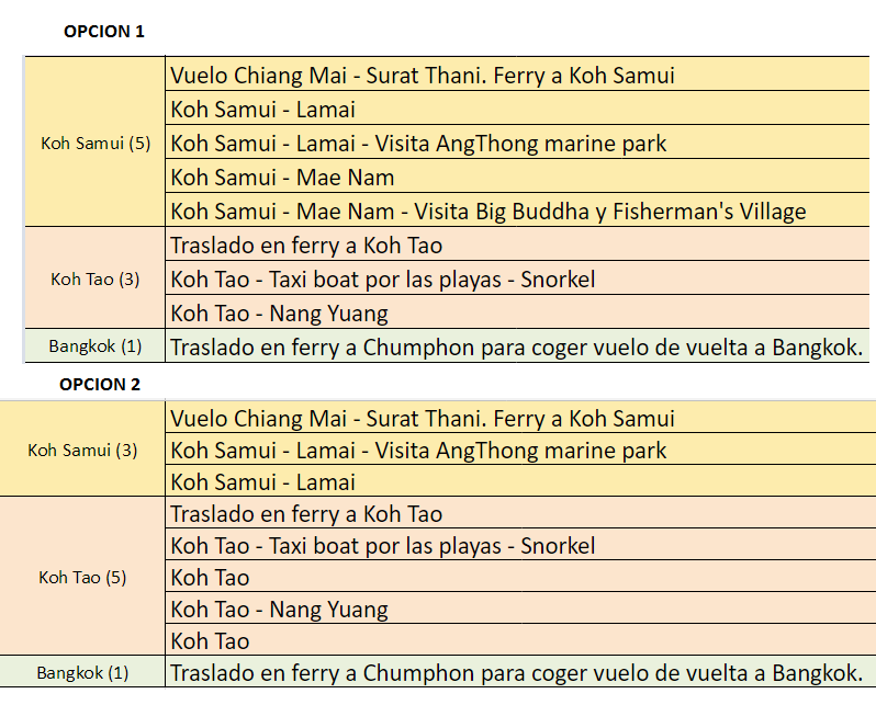 No, si hacemos la primera opción estaremos en Samui de domingo a jueves, si hacemos la segunda, de domingo a martes...