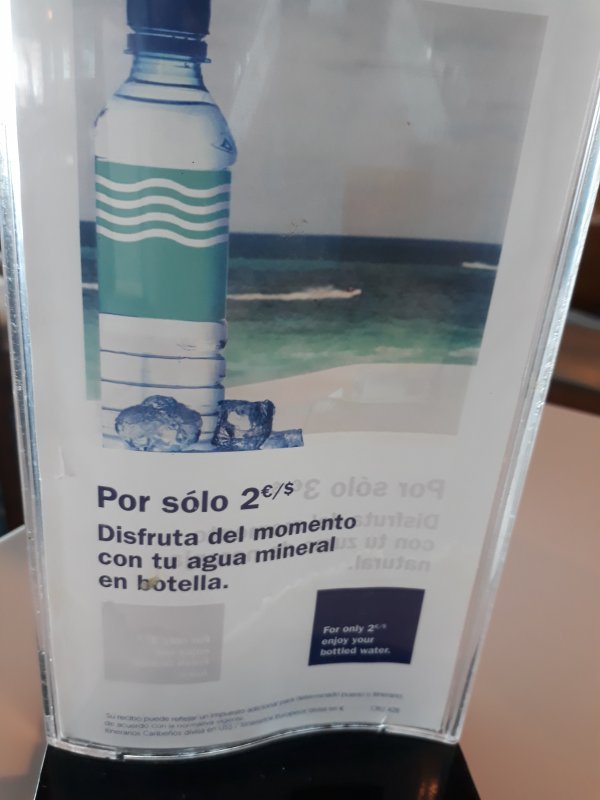 Pues si, notare lo del agua fijo.. Y entonces, si compras la opción de las botellas de agua, puedes llevártela a la cena? O si o si tienes que pedir un agua allí y pagarla a parte?