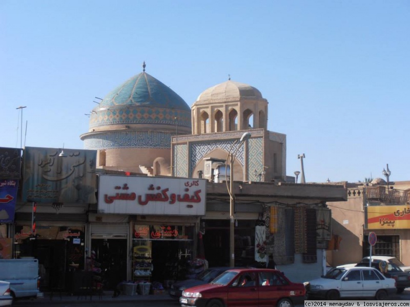 Tras descansar un rato me fui paseando por otras calles en dirección a mi hotel. Es fácil desorientarse y perderse durante unos minutos o más, porque la ciudad antigua es un entramado de calles que discurren en todas las direcciones. Al lado del hotel está el Mausoleo de Bogheh-ye Sayyed Roknaddin. Por fuera la imagen de la cúpula es espectacular. Por dentro lamentablemente estaba completamente andamiado, por lo que era muy difícil contemplar la decoración de techo y paredes, aunque lo poco que vi era realmente impresionante.