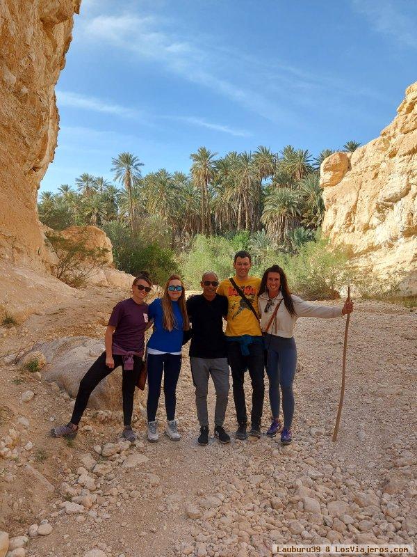 La semana pasada estuvimos con Omar, haciendo un recorrido de 6 días por Tunez. La verdad es que el viaje fue una pasada y disfrutamos mucho, tanto nosotros como nuestra hija (14) y nuestro hijo (17). Le pedimos un viaje alternativo por zonas no excesivamente de turismo de playa ya que somos de Valencia. Y así fue, nos preparó un recorrido desde Tunez capital bajando hacia el sur viendo Hammamed, Monastir, Sousse, Kairouan, Mahdia, El Jem, Tamerza, Chebika... Tuvimos de todo: medinas, mezquitas, lago salado, anfiteatro romano, termas, desierto de piedra, lago salado, playa, baño en cascada del oasis... Y el campamento de Sabria fue espectacular, durmiendo en haimas. Los hoteles que nos buscó Omar fueron una pasada, aunque la verdad es que no nos daba tiempo a disfrutarlos porque llegábamos por la tarde y a las 6 de la mañana nos levantábamos. Menos el de Tunez capital que estaba desfasado, aunque Omar tenía razón y para estar en él solo 5 horas no valía la pena gastarse más dinero. Incluso dormimos 2 noches en un bungalow en Hammamed, con piscina y todo. Toda una aventura, pero con la tranquilidad de ir con Omar que nos cuidó como si fuéramos su familia. Recomendable para los que buscan un viaje intenso a medida por Tunez, y saborear su cultura desde dentro. Como dice Omar, Túnez para viajeros que no turistas...