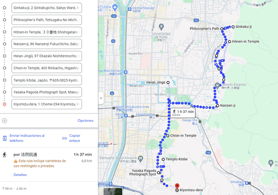El de la zona Este quizás sí, pero va a depender del ritmo y lo que te pares. Prioriza llegar a tiempo al Kiyomizudera (cierra a las 6, una hora más tarde que los demás), teniendo en cuenta que tiene una cuesta con tiendas ... Si ves que vas mal de tiempo, sáltate alguno.