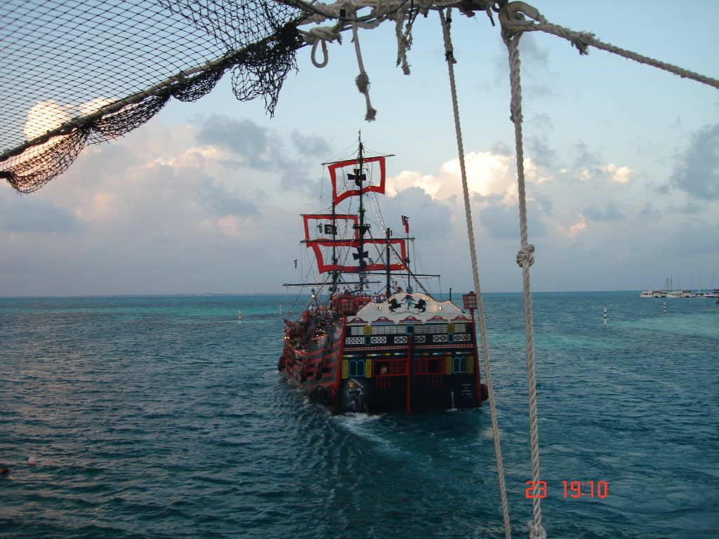 En las fotos de cancún sale un barco pirata, ahí ofrecen una cena muy buena con barra libre de bebidas (muchas margaritas jajaja) actúan una lucha de piratas entre los 2 barcos que zarpan de Cancún a Isla Mujeres, muy recomendable y divertido, tanto si vas con niños, como nosotros que fuimos puros adultos.