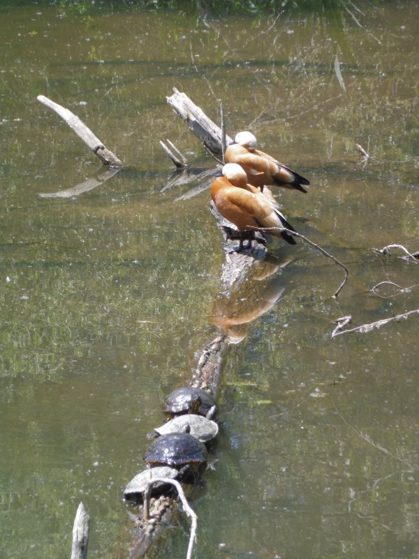 Vimos numerosas aves: incluso vimos un cisne y un martín pescador, además de patos y tortugas de todo pelaje (lamentablemente algunas de especies invasoras).