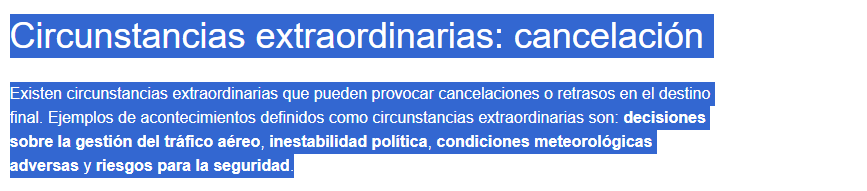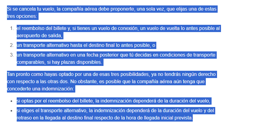 - Reubicarme en un vuelo distinto -> en teoría me ofrecen otros vuelo, pero si a la hora de ir a escoger el vuelo alternativo, no hay ningún vuelo que escoger, esto no es ninguna alternativa...