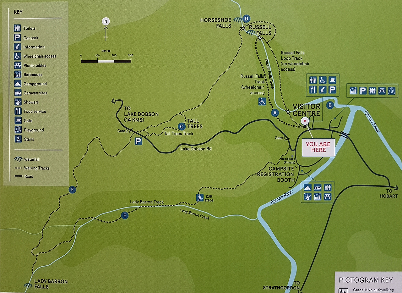 La primera, cerca de la entrada del parque, incluye el centro de visitantes, instalaciones para picnic y las famosas cataratas Russell.