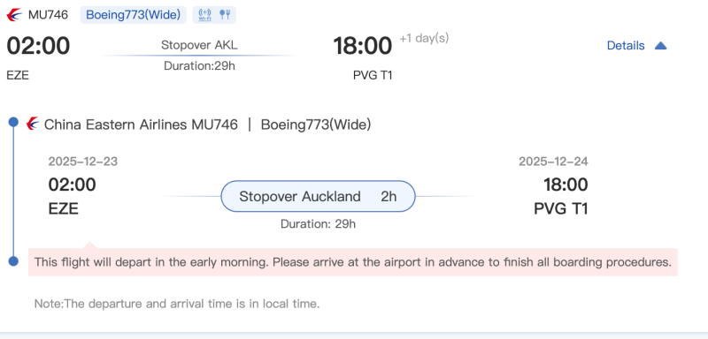 El vuelo de China Eastern tardará 29 horas a Shanghai desde Buenos Aires y 14 horas hasta Auckland