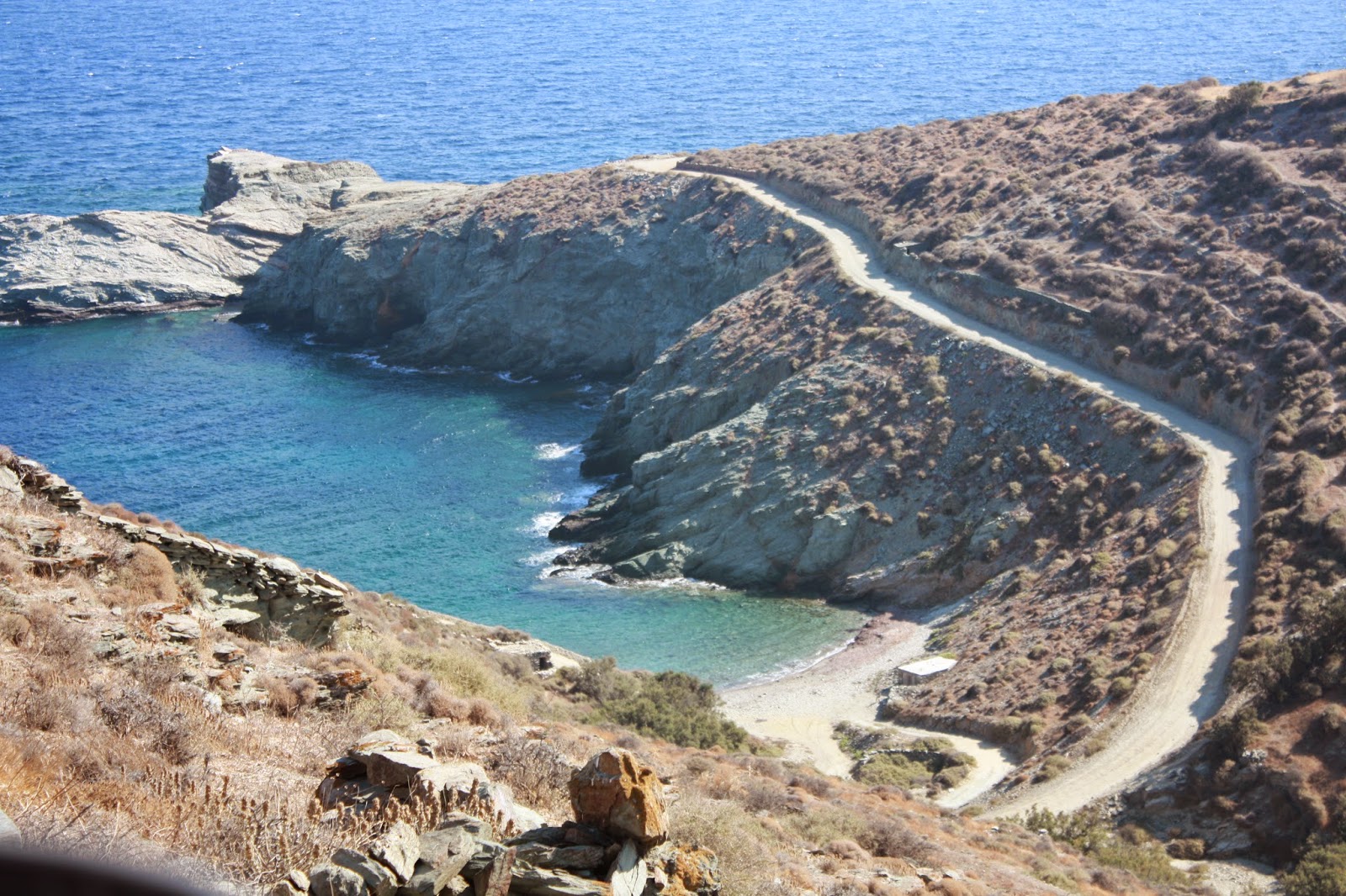 Es que he visto fotos y descripción de una bajadita con desnivel pero esa creo que es la playa Ligaria antes de Ag. Georgios, pongo enlaces a fotos