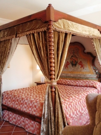 La otra habitación superior estaba muy bien también, lo único que la cama no era con dosel sino semi-dosel, el tamaño era de 1.50 y dicha habitación no tenia ventanas al exterior.Esta habitación tenia un pequeño salón con una ventana a un patio pero donde se localizaba la cama no habia luz natural y eso a mi no me gusta.