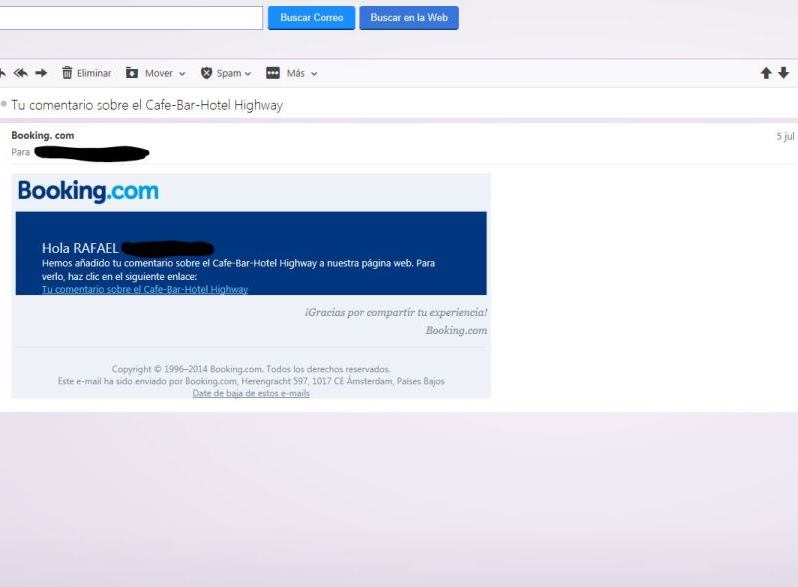 A los dos días me llega el email de booking para que deje mi opinión sobre el hotel, algo que hago, siendo mi comentario, evidentemente, muy negativo, aunque sin palabras malsonantes, por supuesto.
