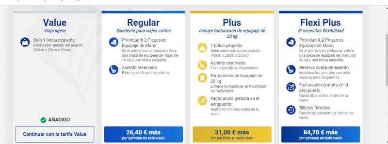 Buenas tardes....seriais tan amables de decirme si es posible con las nuevas modalidades de la compañia coger dos vuelos de ida y vuelta en la misma compra pero sin tener que escoger en los dos la opción con maleta facturada....me explico somo dos personas de la familia y queremos viajar juntos y solo llevar una maleta facturada en comun, con lo cual uno pagaria el billete completo y el otro va solo de acompañante en la ida y vuelta.....gracias por vuestra atención