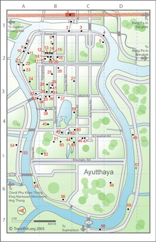 mapa de ayuttaya, Ayutthaya: Que ver, Excursiones, Transportes
