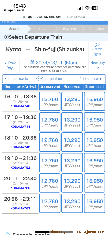 Por más que miro en NAVITIME la ruta Kyoto- Shinfuji y Shinfuji-Tokyo me cuesta sobre 21.000 yenes con asiento. Para comprar este trayecto recomendáis comprarlo con tiempo o en el mismo día te puede comprar?