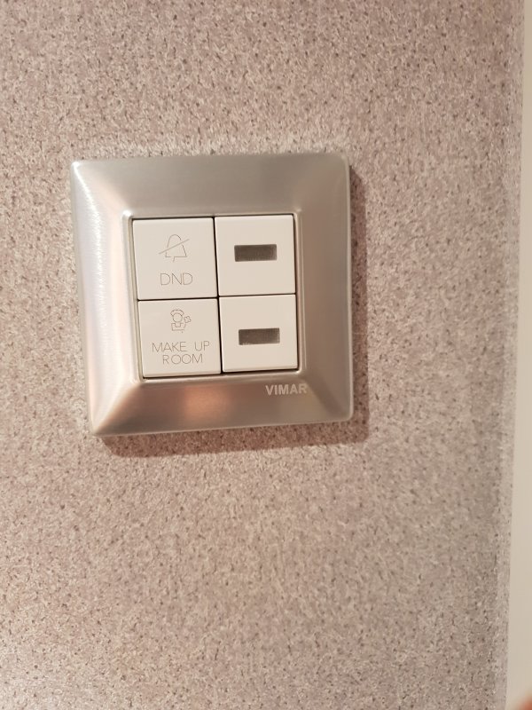Tema que te hagan la habitación cuantas veces quieras. Estos botones está al lado de la puerta de tu camarote, si quieres que te hagan la habitación pulsan MAKE UP ROOM y si no quieres que la hagan o no te molesten DND (dont not disturb) así no tendréis problemas.